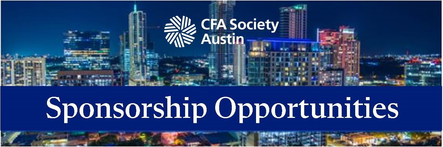View the CFA Society Austin - 2024 Sponsorship Brochure Please contact the sponsorship chair with any questions or requests for information at sponsorship@cfaaustin.org