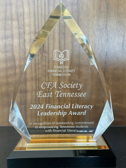 CHATTANOOGA, TN – September 18, 2024 – The CFA Society East Tennessee was recently honored with a Leadership Award from the Tennessee Financial Literacy Commission for its exemplary efforts in advancing financial literacy throughout East Tennessee. The award recognizes the Society's impactful partnership with the Hamilton County School District, highlighting its role in selecting a state-approved curriculum and training district teachers on investment fundamentals.