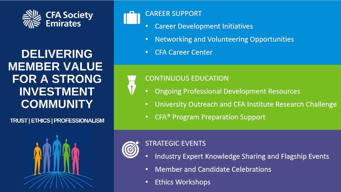 Founded in 2002, CFA Society Emirates was created to serve the growing needs of investment professionals in the UAE for support, continuing education and networking opportunities.