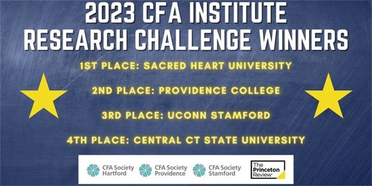 The CFA Society Hartford hosts a local competition as part of the annual CFA Institute Global Research Challenge (The Research Challenge) in association with the CFA Society Providence and the CFA Society Stamford. One team of three to five students per university is challenged to conduct an equity analysis of a public company, specified by the CFA Society Hartford. Each university may have up to two teams.