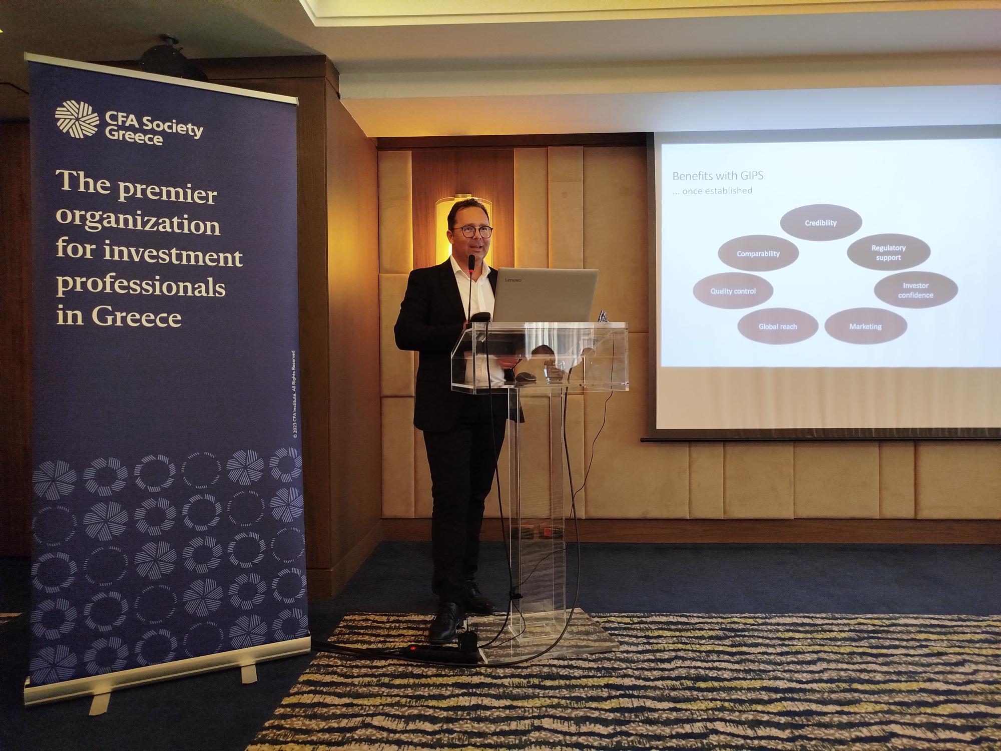 On May 14, 2020 we hosted our first virtual GIPS event, "Exploring 2020 GIPS Standards, Application to Asset Owners and Pooled Funds" with guest speaker, Iain McAra, Director of Global Industry Standards at CFA Institute. The webinar was attended by CFA Society Greece ,embers, as well as members of the Hellenic Fund and Asset Management Association. The webinar focused on two areas that were impacted by the development of the 2020 GIPS standards: