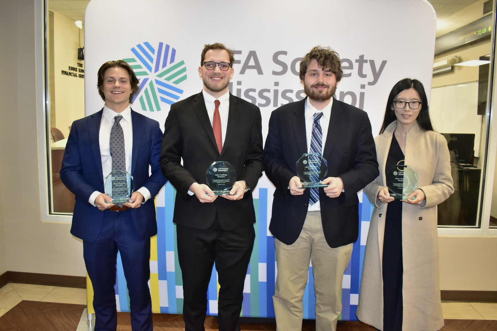 On September 22, 2022, CFA Society Mississippi gathered at the AC Hotel by Marriot in Ridgeland, MS, to recognize and celebrate our newest CFA charterholders. These individuals include Austin Mills, CFA, Ming Ju, CFA, Jack Heidelberg, CFA (all pictured above), Joshua Norris, CPA, CFP, CFA, and Daniel Drummond, CPA, CFA. Congratulations to these individuals for achieving the highest distinction in the investment management profession and proving themselves by dedicating hours of intense study to pass one of the most rigorous series of exams in the financial industry.