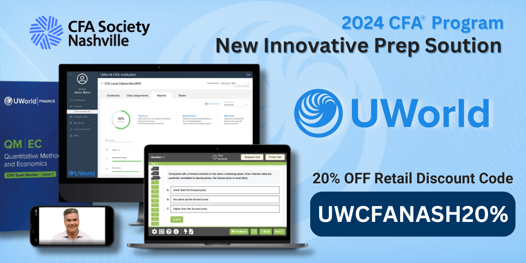 We are proud to partner with UWorld to help you prepare for your CFA® Program exam in one place with personalized, seamless, and reliable exam prep materials. UWorld’s team of certified financial experts have been where you are, understand what it takes to pass high-stakes exams, and are dedicated to making the hard stuff easy to understand.