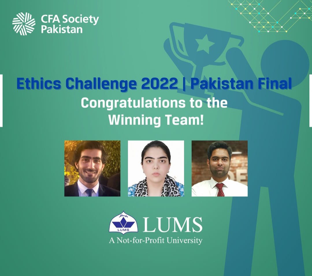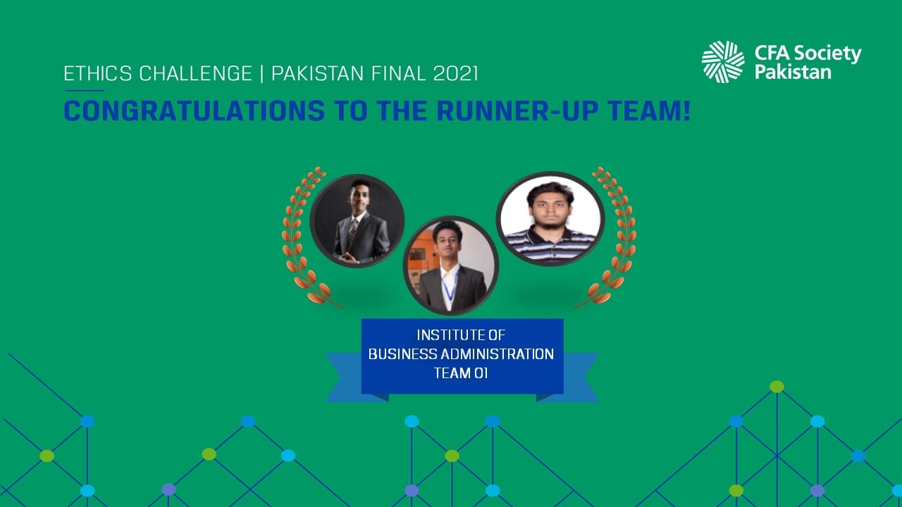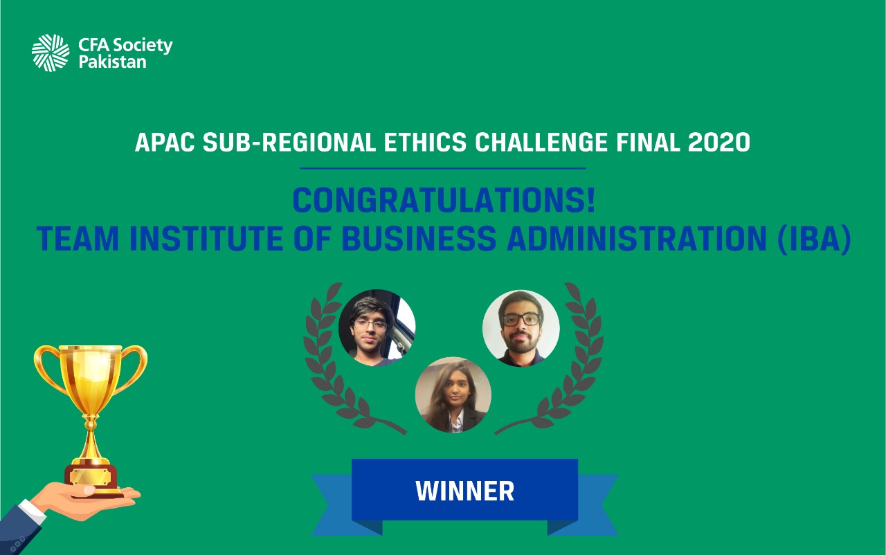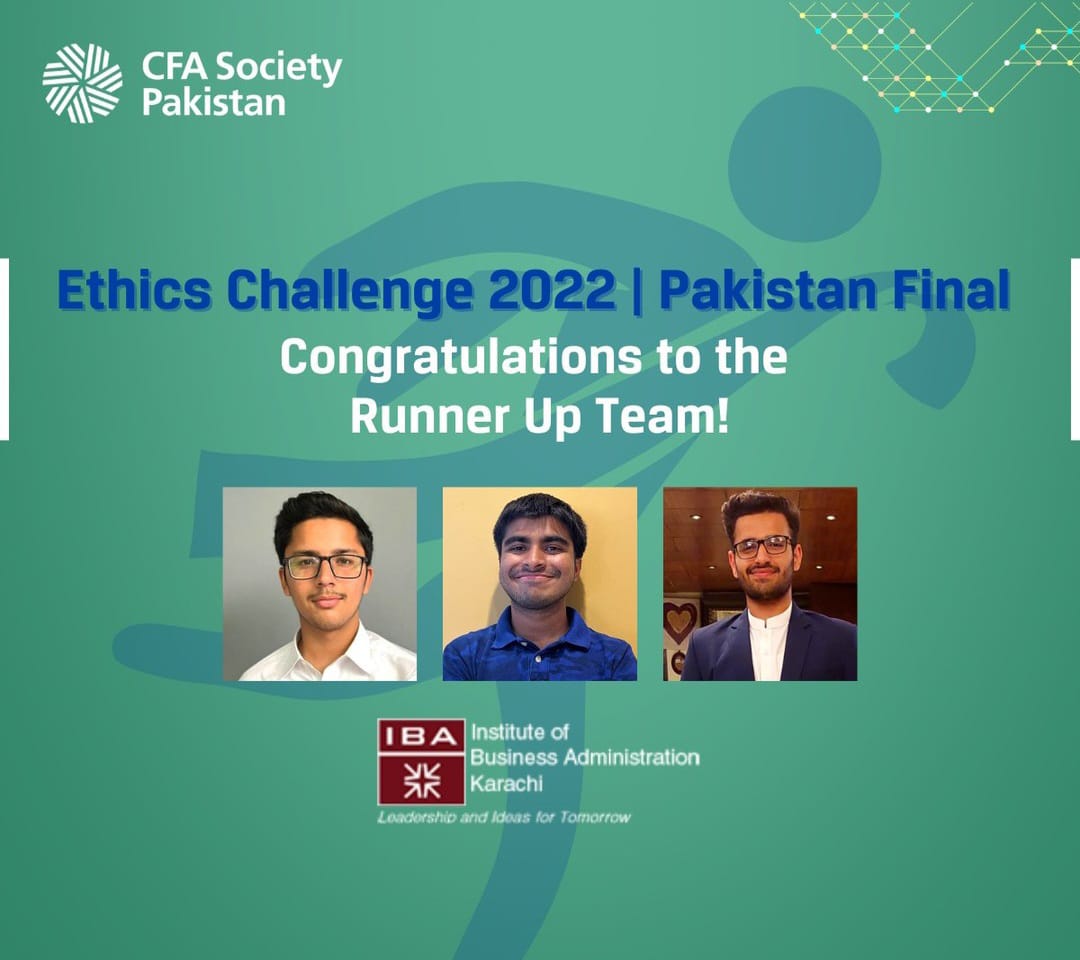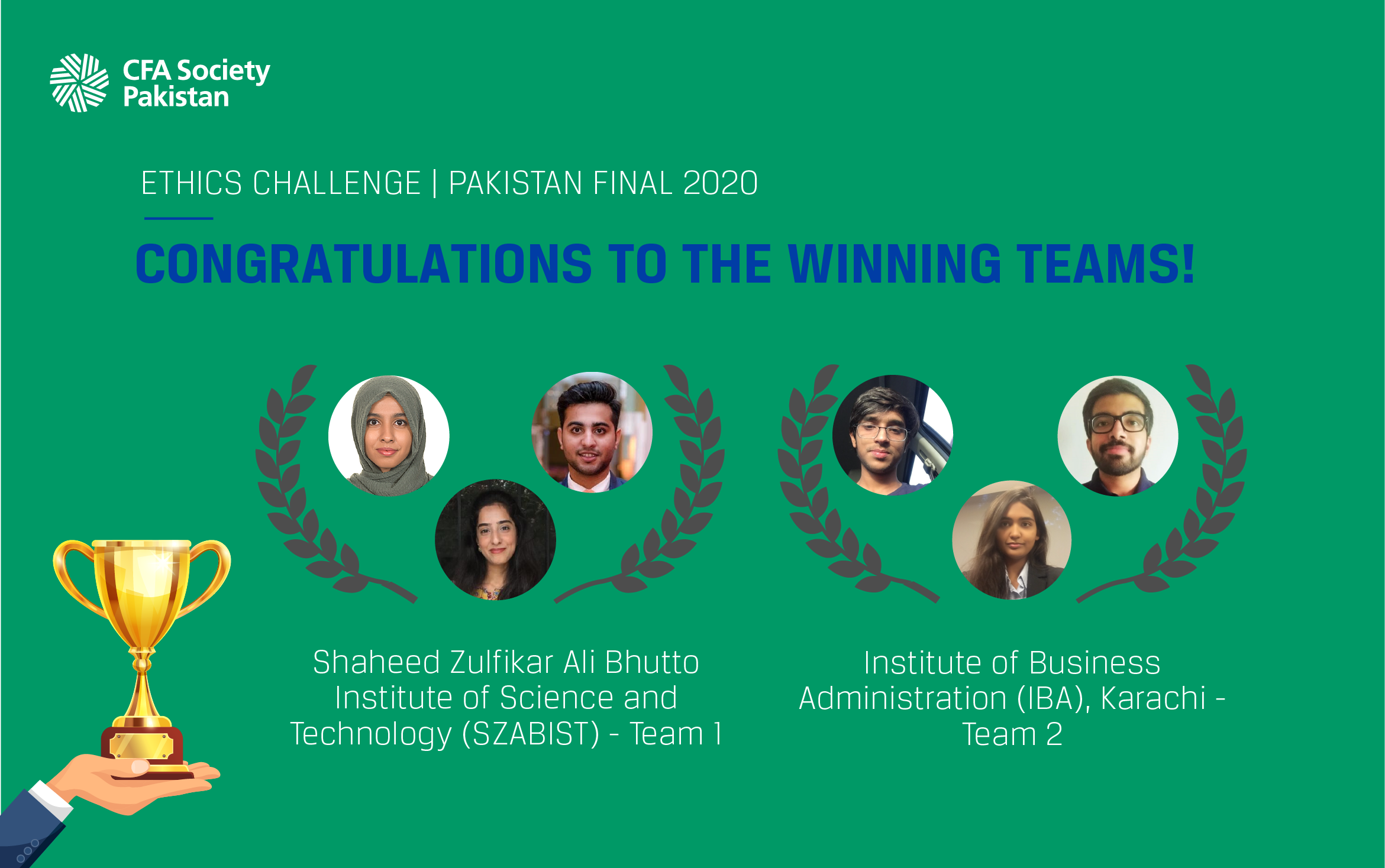 Institute of Business Administration (IBA) and Shaheed Zulfikar Ali Bhutto Institute of Science and Technology (SZABIST) won the Pakistan Final and proceeded to the Regional Final of Ethics Challenge.