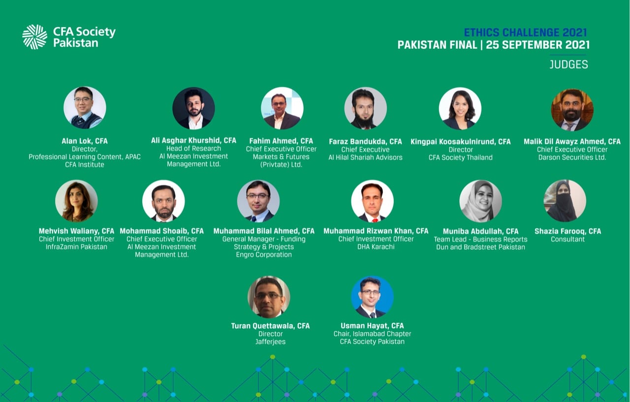 The very first Ethics Challenge in Pakistan was organized by CFA Society Pakistan on 5 September 2020. Due to the unforseen circumstances caused by the Covid-19 Pandemic, the competition was conducted virtually.