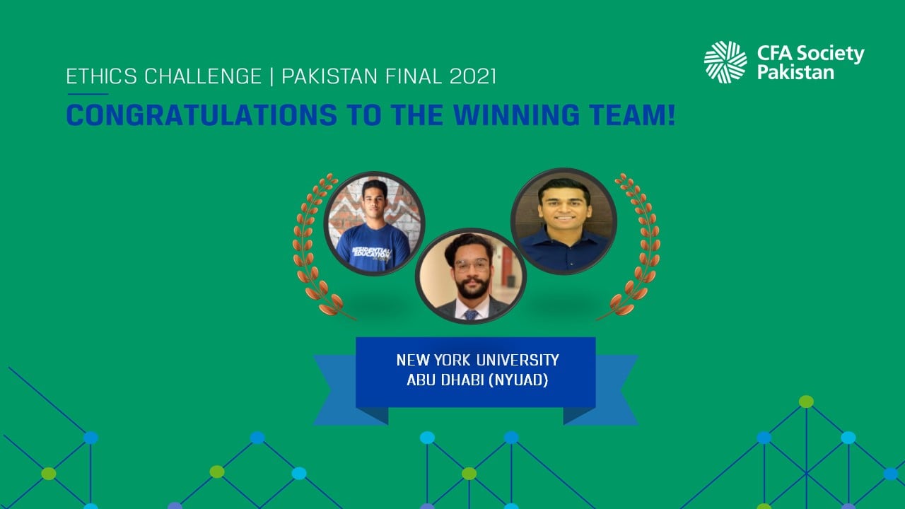 New York University Abu Dhabi (NYU Abu Dhabi) won the Pakistan Final of Ethics Challenge 2021 and moved to the APAC Regional. A team from Institute of Business Administration (IBA) secured the Runner-up position.