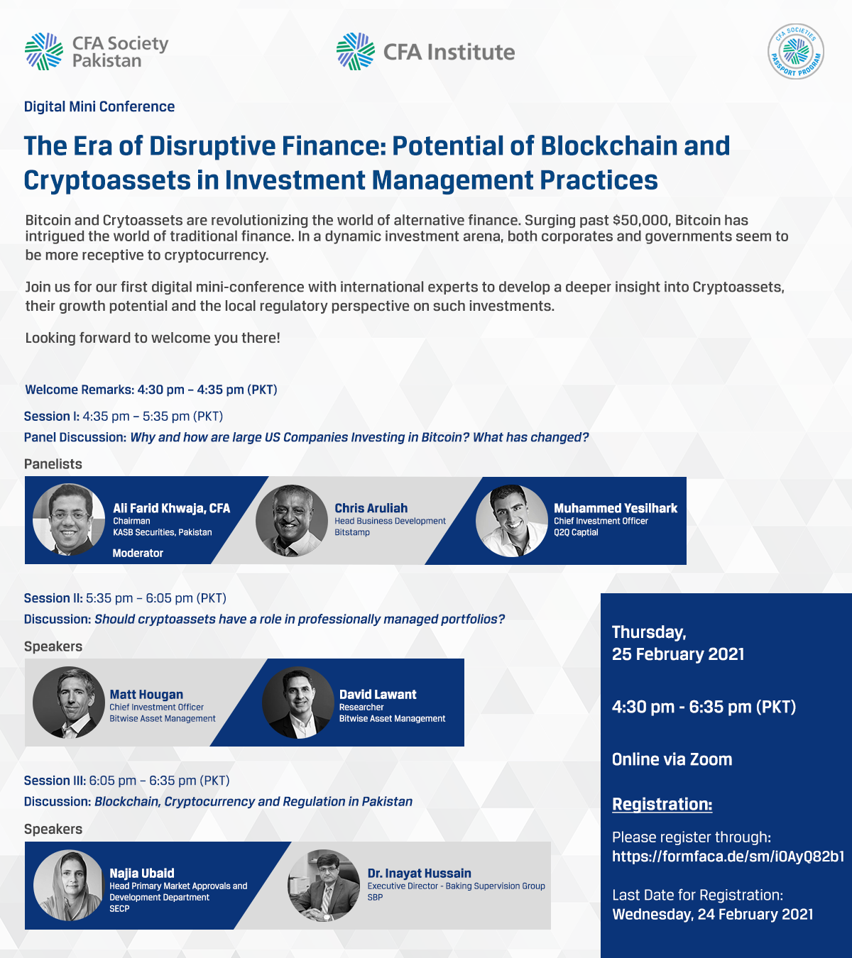 Time/Date: 4:30 pm - 5:30 pm (PKT) on Tuesday, 23 February 2021