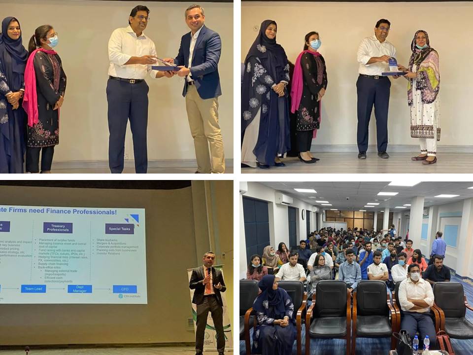 Speakers for the session included Ms. Florence Wong, Director, University Relations, Asia Pacific - CFA Institute, Mr. Imtiaz Gadar, CFA, Head of Capital Markets, Bank Alfalah Limited , Mr. Mustafa O. Pasha, CFA, Chief Investment Officer, Lakson Investments Limited, Mr. Muhammad Bilal Ahmed, CFA, General Manager, Funding Strategy & Projects, Engro Corporation, Mr. Mohammad Bilal Khan, CFA, Finance Head - HomeCare Division, Competitive Intelligence, and NRM, Unilever Pakistan and Mr. Jawad Shamim, CFA, ACCA, Vice President, Research, EFG Hermes Pakistan.
