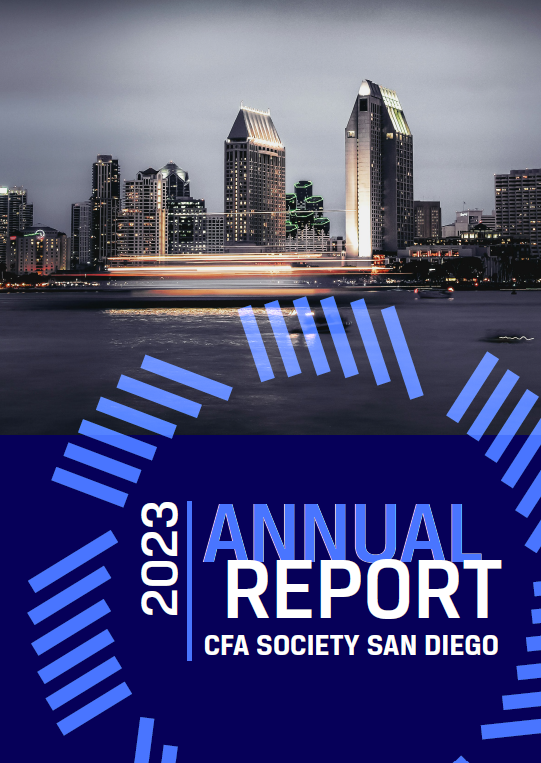 CFA Society San Diego is pleased to present our 2023 Annual Report! We are proud of what we've accomplished over the last year, and we hope you will take a few moments to read it at your leisure.