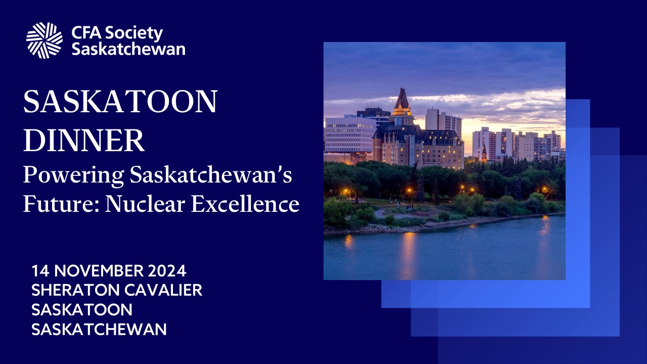 Join us at this year’s CFA Society Saskatchewan's Saskatoon Regina Dinner, with keynote speakers Cory Kos, Vice President, Investor Relations, Cameco Corporation and Erin Taman-Athmer, Associate Vice President, Nuclear Stakeholder Management Saskatchewan Research Council.