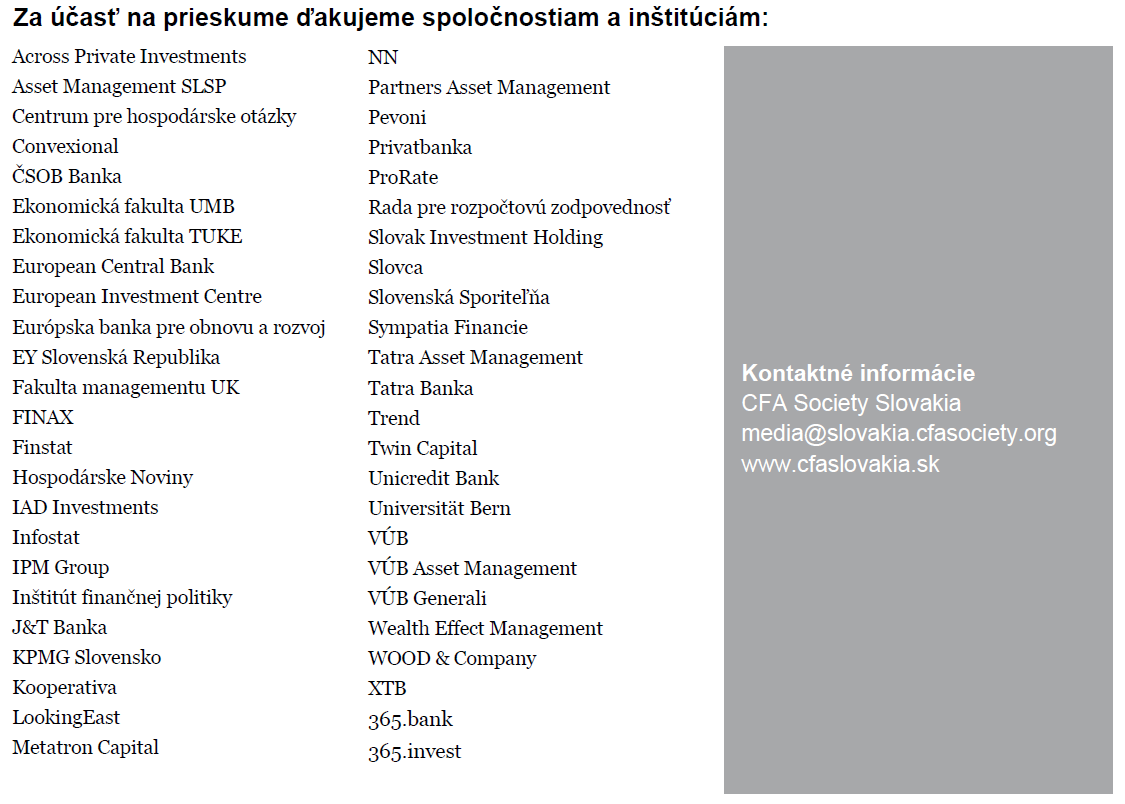 Celkové výsledky aktuálneho prieskumu ekonomického sentimentu CFA Society Slovakia