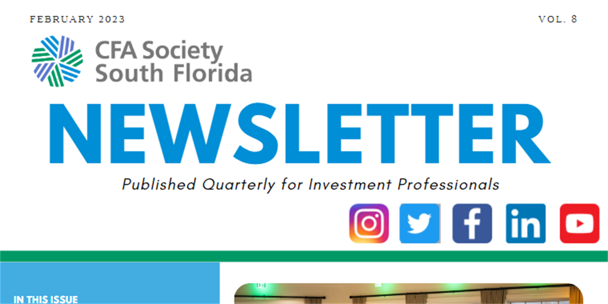 Special thanks to Daryl Clements, Municipal Portfolio Manager for AllianceBernstein, Dan Davidowitz, CFA, Portfolio Manager and Analyst for Polen Capital, and Daniel Phillips, CFA, Director of Asset Allocation Strategy for Northern Trust Asset Management, for sharing your time and expertise with us! Also, thank you Christina Worley, CFA, CFP, CPA/PFS, both for moderating the panel and for your service as a CFA Society South Florida Director.