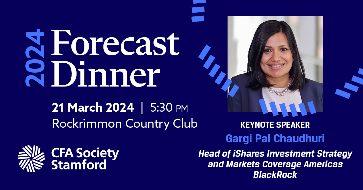CFA Society Stamford's 2024 Forecast Dinner was held on March 21st. This was the 22nd year we held this premier networking event, bringing together leading investment and financial professionals in Westchester and Fairfield Counties.