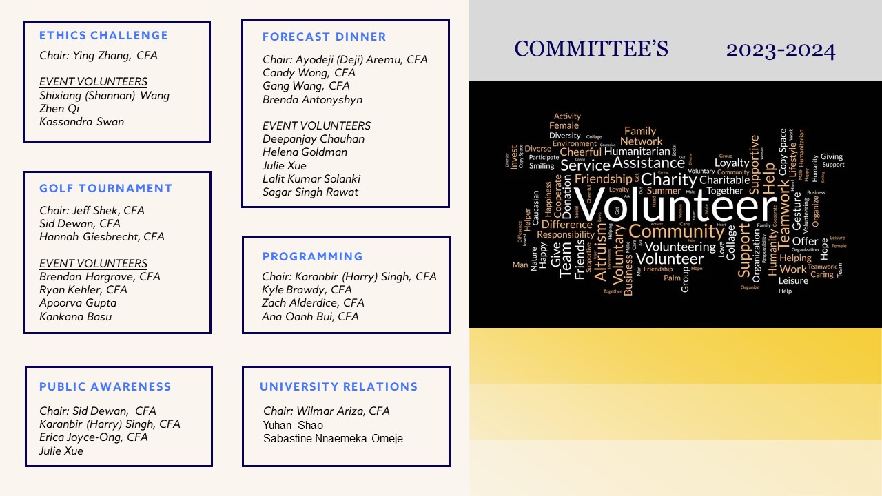 The CFA Society Winnipeg Nominating Committee will meet with anyone interested in joining the Board of Directors for the upcoming fiscal year.